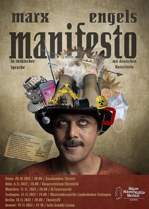 Das Kommunistische Manifest, das weltbewegende Werk von Marx und Engels, das zum ersten Mal in der Geschichte für die Theaterbühne adaptiert wurde und im April letzten Jahres in Istanbul seine Weltpremiere hatte, wird im Rahmen der Deutschlandtournee mit dem Stück „Manifest“ in verschiedenen Städten Deutschlands und in Genf in der Schweiz aufgeführt. Die Deutschlandtournee, deren Vorbereitungen im vergangenen Juni dieses Jahres abgeschlossen wurden, musste wegen des Visumsproblems des Theaterteams verschoben werden.