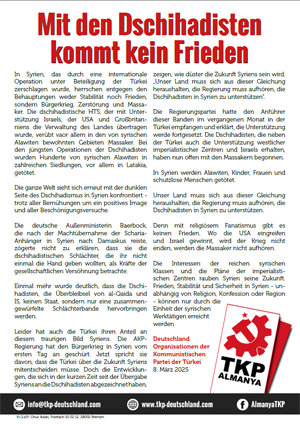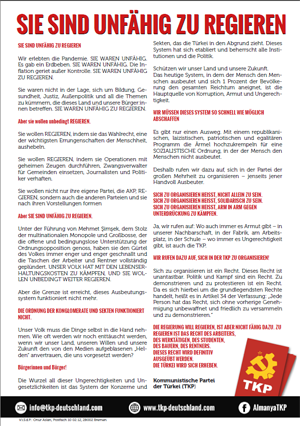 Diese Erklärung des Zentralkomitees der TKP, die in der Öffentlichkeit breit verbreitet wird, gilt als offizielle Erklärung aller TKP-Organisationen in der Türkei.