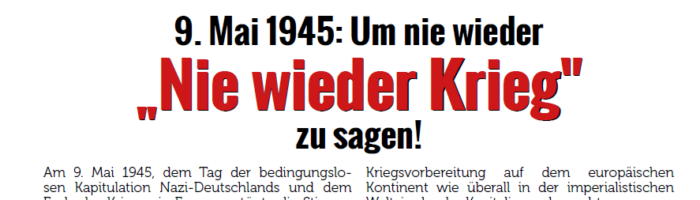 9. Mai 1945: Um nie wieder „Nie wieder Krieg“ zu sagen!