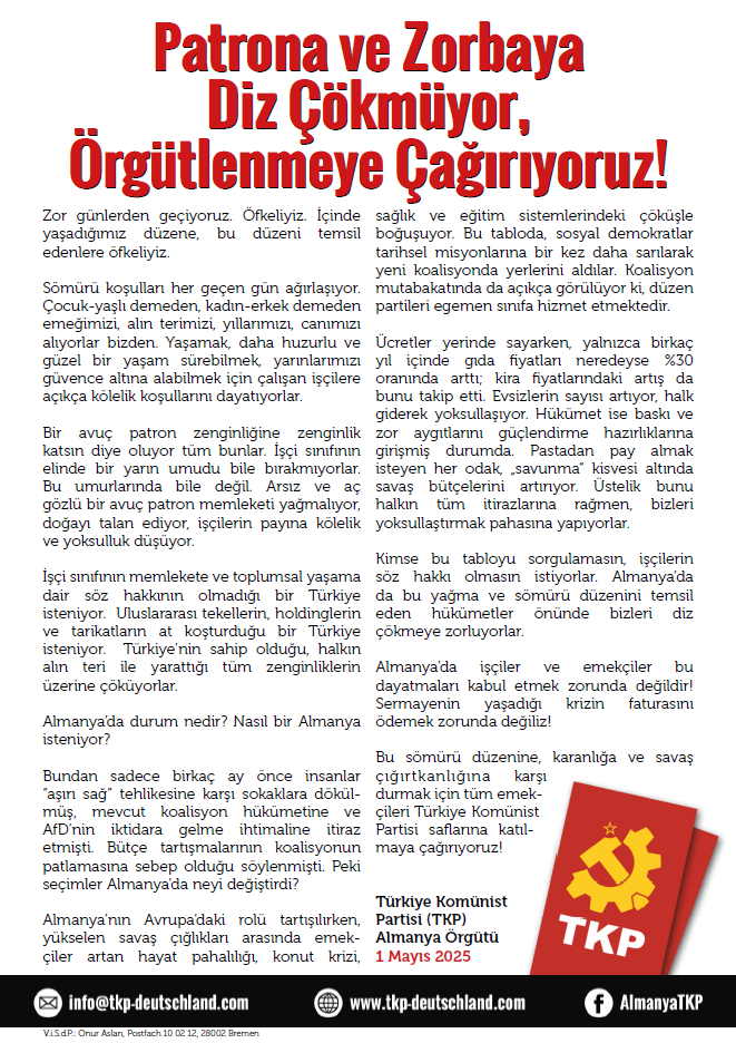 Deutschland-Organisation der Kommunistischen Partei der Türkei, 1. Mai 2025