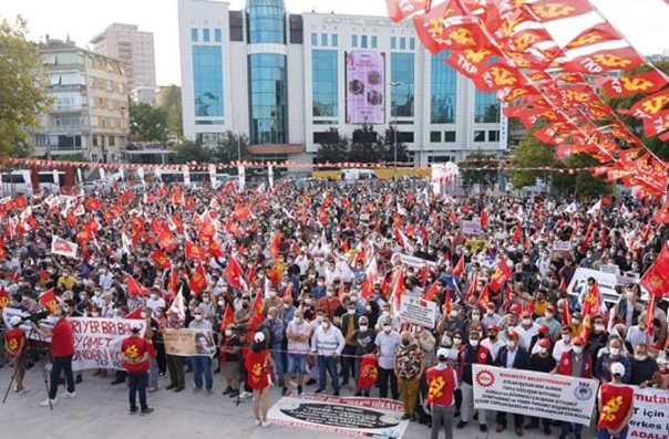 Tausende von Menschen versammelten sich auf dem Kartal-Platz in Istanbul zu einer von der Kommunistischen Partei der Türkei (TKP) organisierten Kundgebung unter dem Motto „Nicht verschieben, keine Zeit verlieren, sich nicht mit weniger zufrieden geben! Jetzt ist die Zeit für den Sozialismus“.