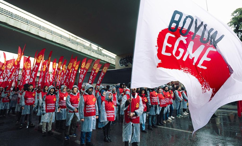So glaubte ein großer Teil der Bevölkerung nach den Protesten rund um Saraçhane, dass die Tage der AKP gezählt seien, während er angesichts des Prozesses zwischen der AKP und der DEM-Partei nun entmutigt ist und die Legende weiterträgt, die AKP sei unbesiegbar. Die TKP bleibt von dieser Spirale aus Hoffnung und Hoffnungslosigkeit verschont, weil sie sich nie Illusionen über die TÜSİAD, über europäische Staaten, die USA, „gute” religiöse Orden oder ehemalige AKP-Politiker gemacht hat. Die TKP betont bei jeder Gelegenheit, dass ein Kampf gegen die AKP ohne grundlegende Infragestellung des Systems nicht möglich ist, und erinnert daran, dass das Problem nicht allein im „Palastregime” liegt.