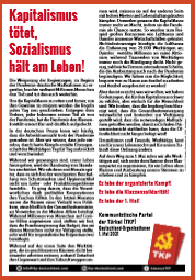 Auf dem Weg zum 1. Mai rufen wir alle Werktätigen auf, sich unter dem Banner ihrer Klassenpartei zu organisieren, für ein Leben ohne Klassen und Ausbeutung unsere Stimmen zu erheben und zu kämpfen.