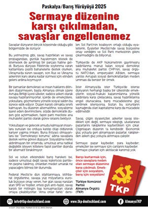 Ob in Deutschland, in der Türkei oder in irgendeinem anderen Land der Welt: Wenn die Angriffe auf die sozialen Errungenschaften der arbeitenden Menschen abgewehrt werden sollen, wenn Kriegsvorbereitungen verhindert werden sollen, wenn der Kampf für den Frieden verstärkt werden soll, dann muss auch der Kampf gegen den Kapitalismus geführt werden, der die Wurzel all dieser Probleme ist.